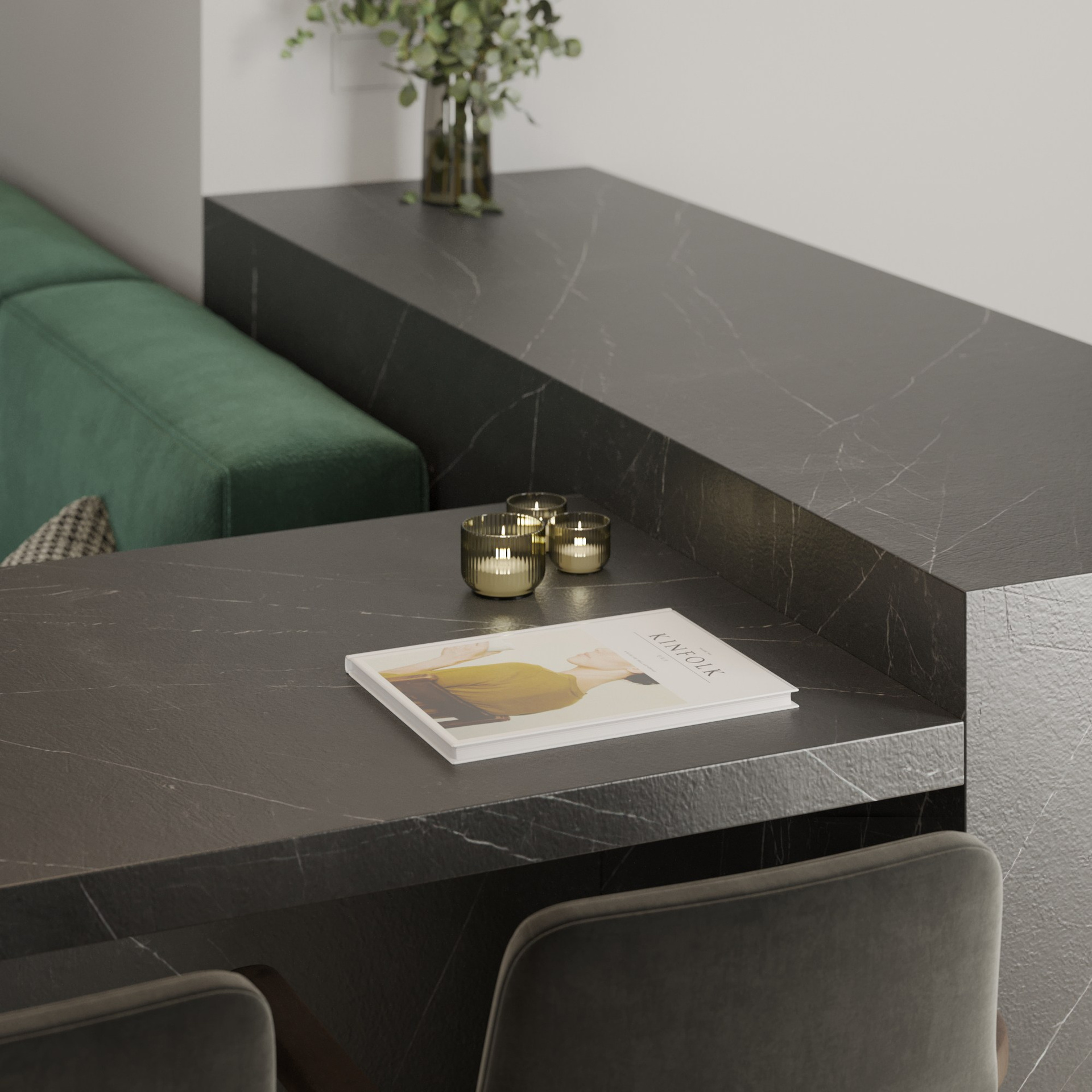 In terms of style and colors, the customer prefers dark, monochromatic solutions with colored accents.