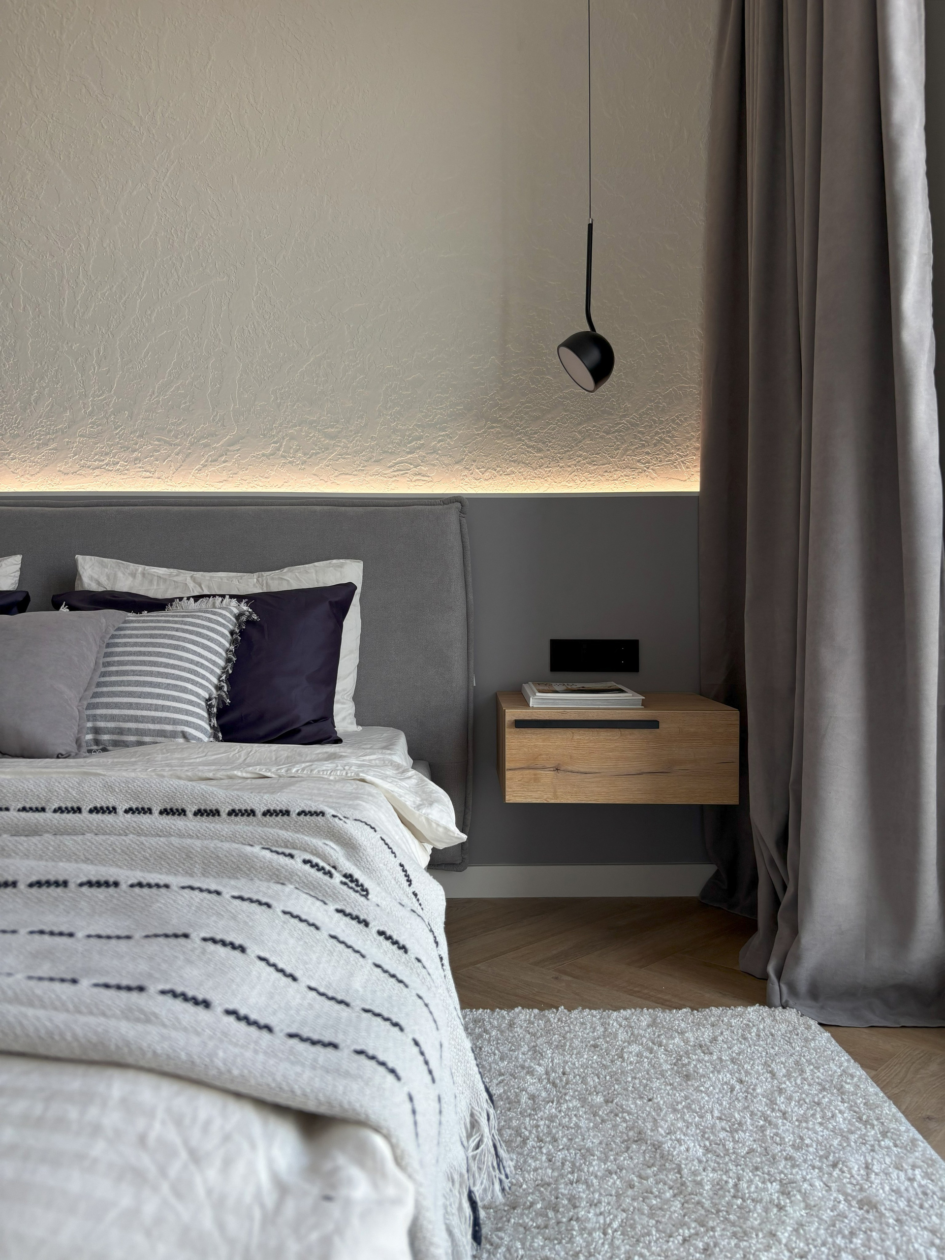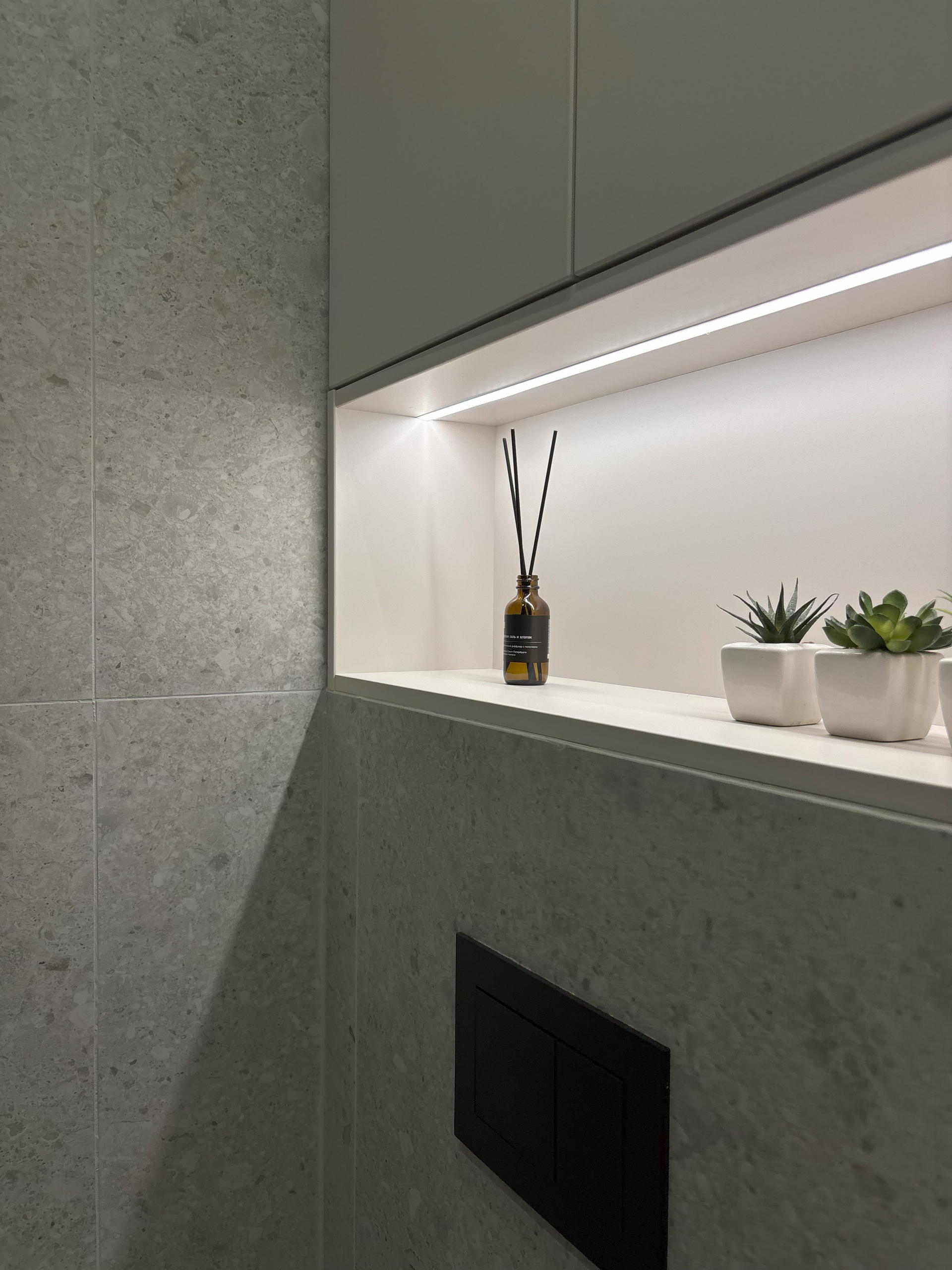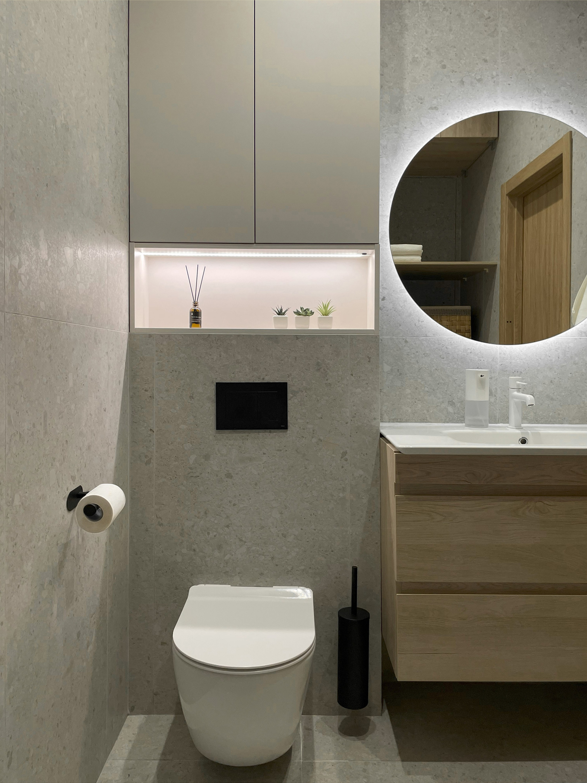 Так как квартира приобретена для аренды, мы не закладывали заведомо дорогостоящих решений. Отдавали предпочтение готовым мебельным позициям, некоторые светильники заказывали из Китая, а сантехнику на маркетплейсах.
