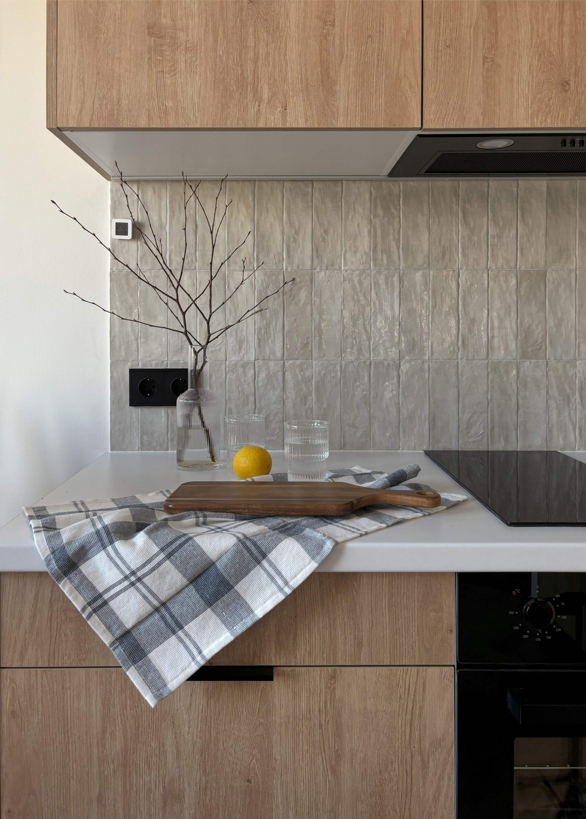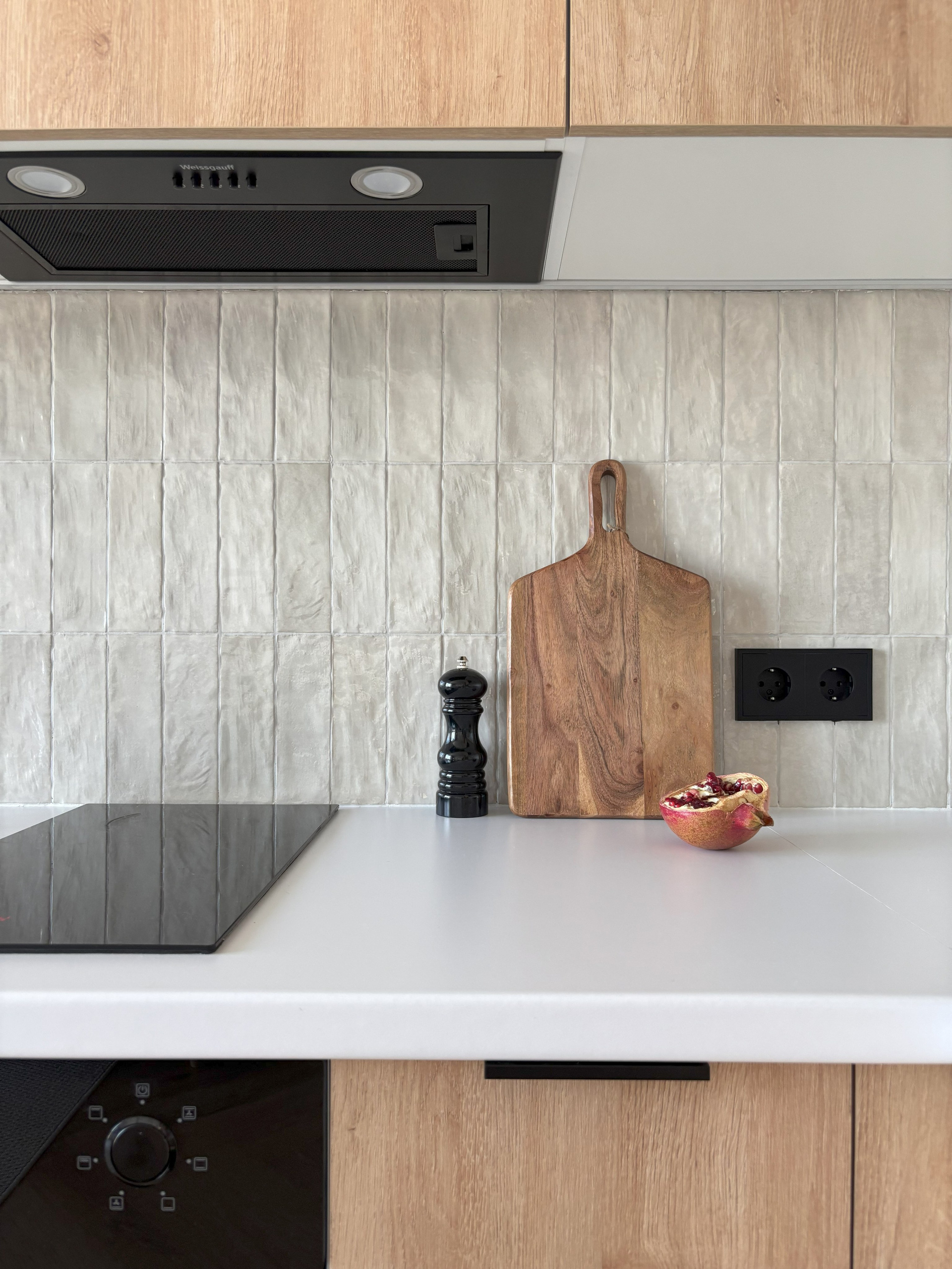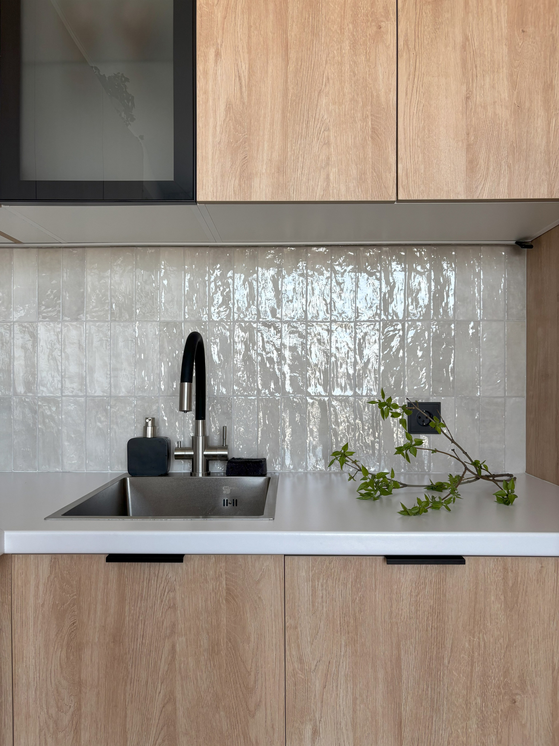 Так как квартира находится в другой стране, реализацией заказчица занималась сама. Мы помогали удаленно советом, а также ремонтом курировала наша подробная таблица со всеми материалами и ссылками.