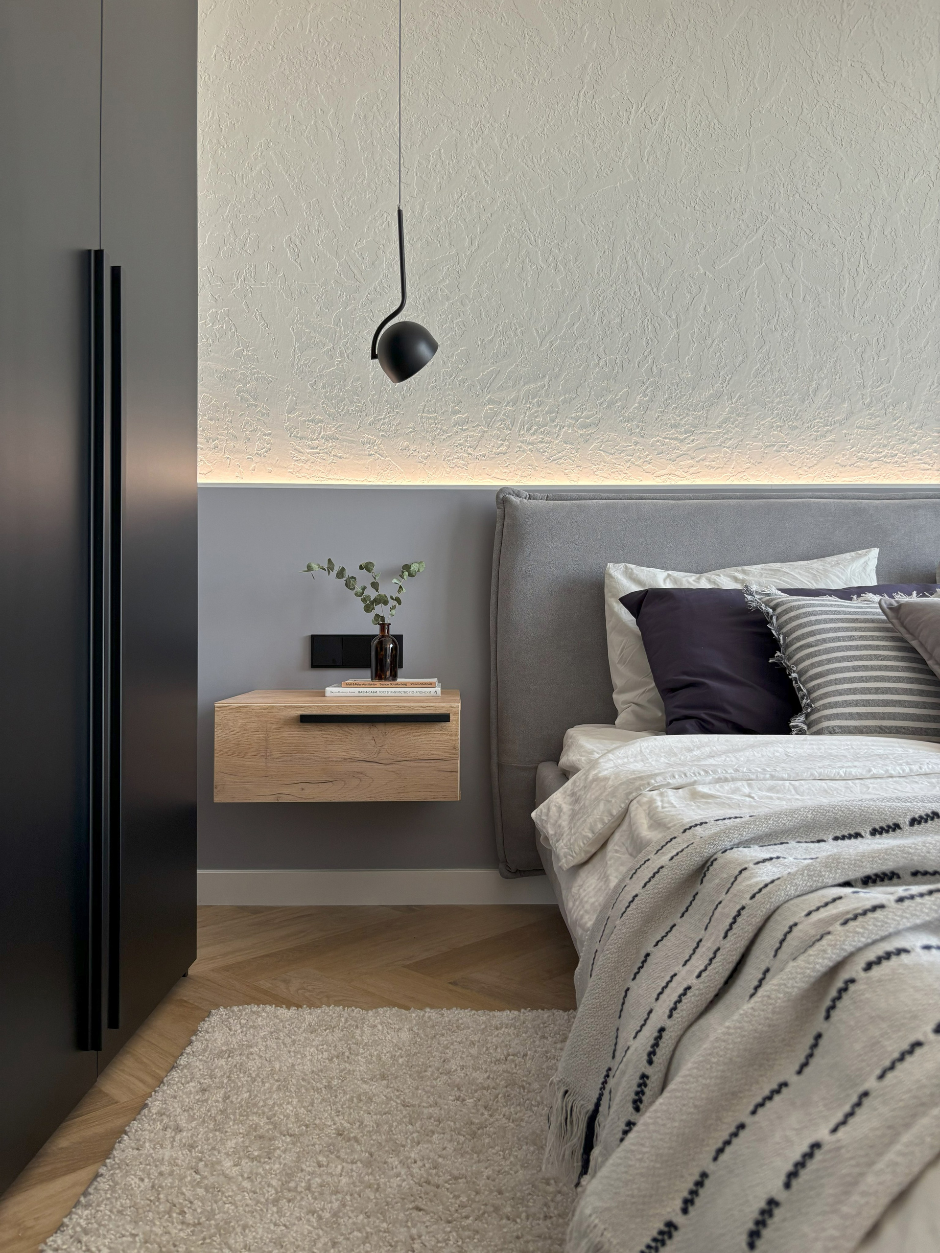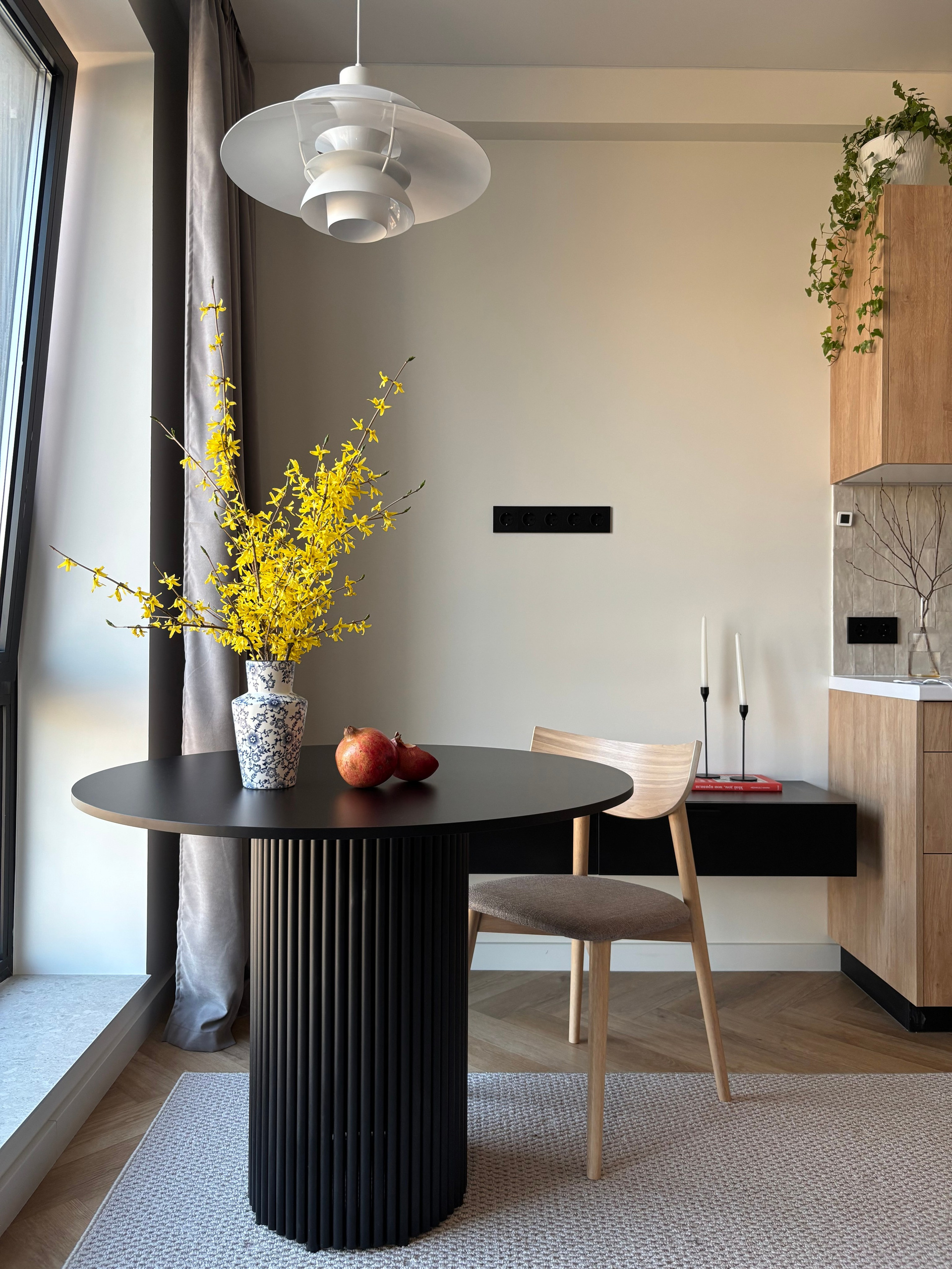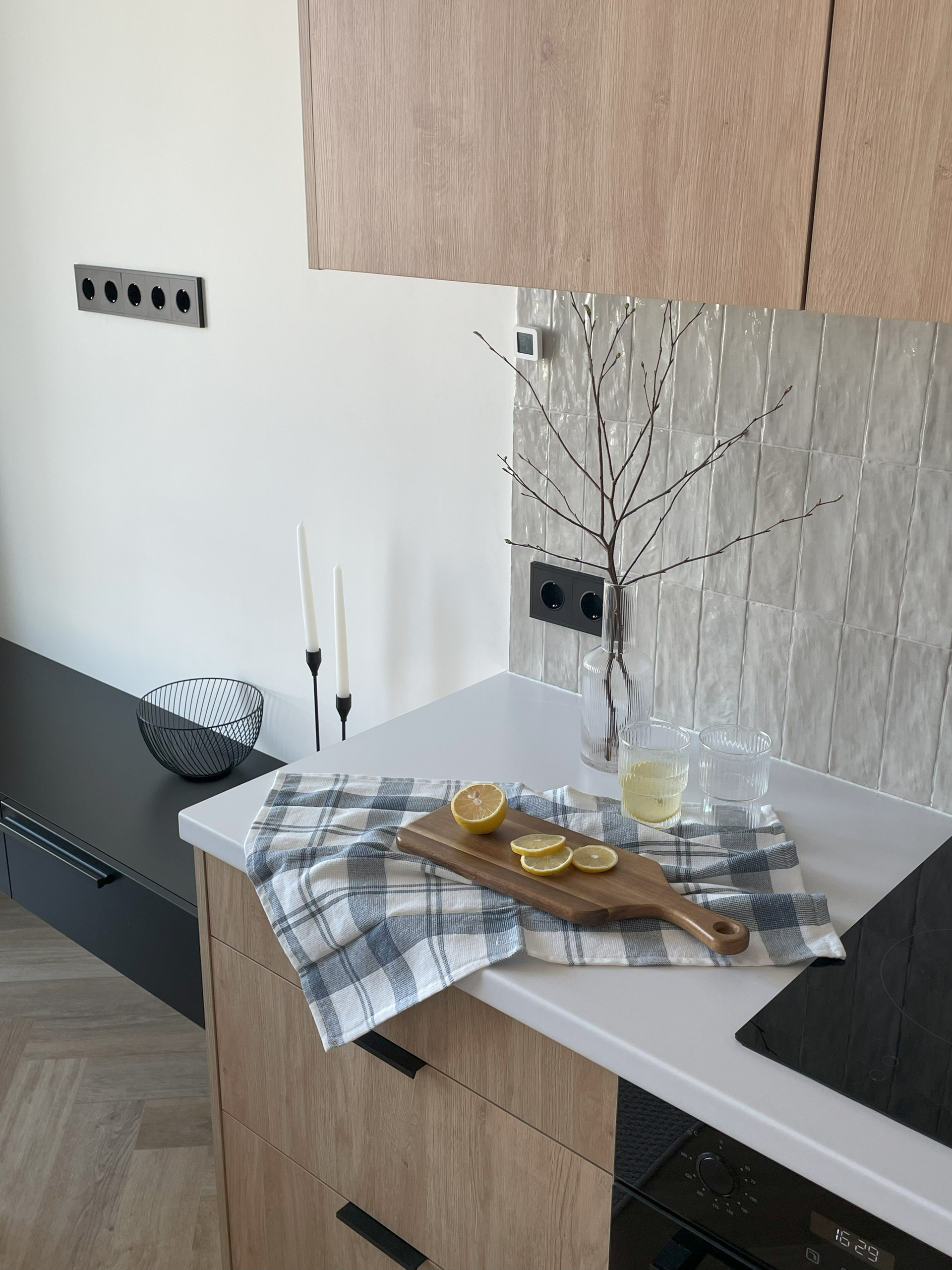 Так как квартира находится в другой стране, реализацией заказчица занималась сама. Мы помогали удаленно советом, а также ремонтом курировала наша подробная таблица со всеми материалами и ссылками.