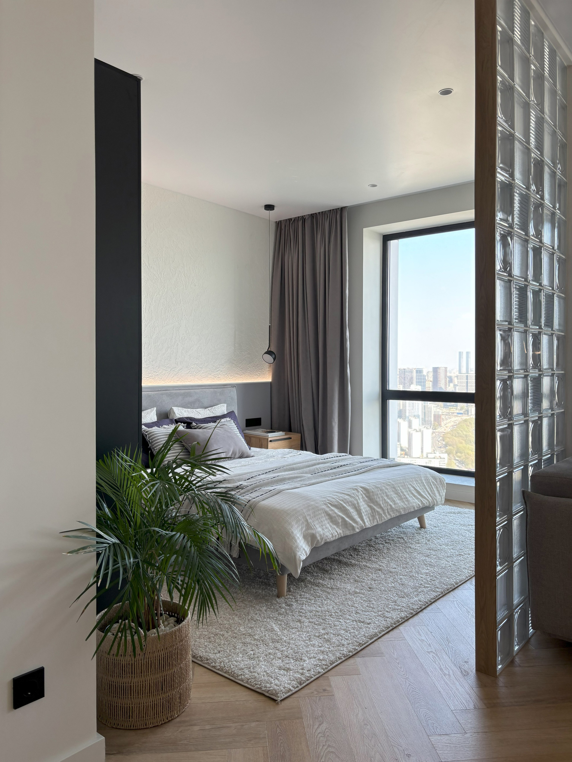 Данный проект мы разрабатывали для нашей хорошей знакомой, квартира была приобретена для сдачи в аренду. Когда нас пригласили в проект, уже имелась планировка и были возведены стены под нее.