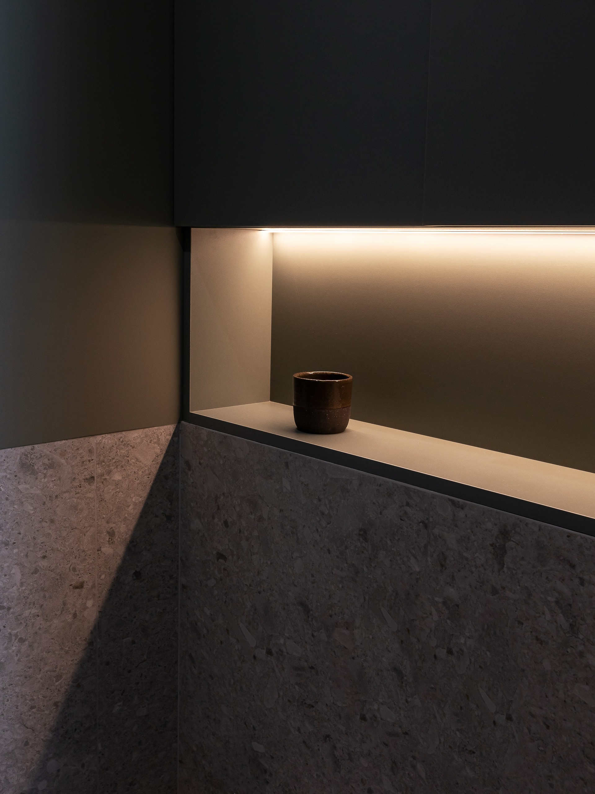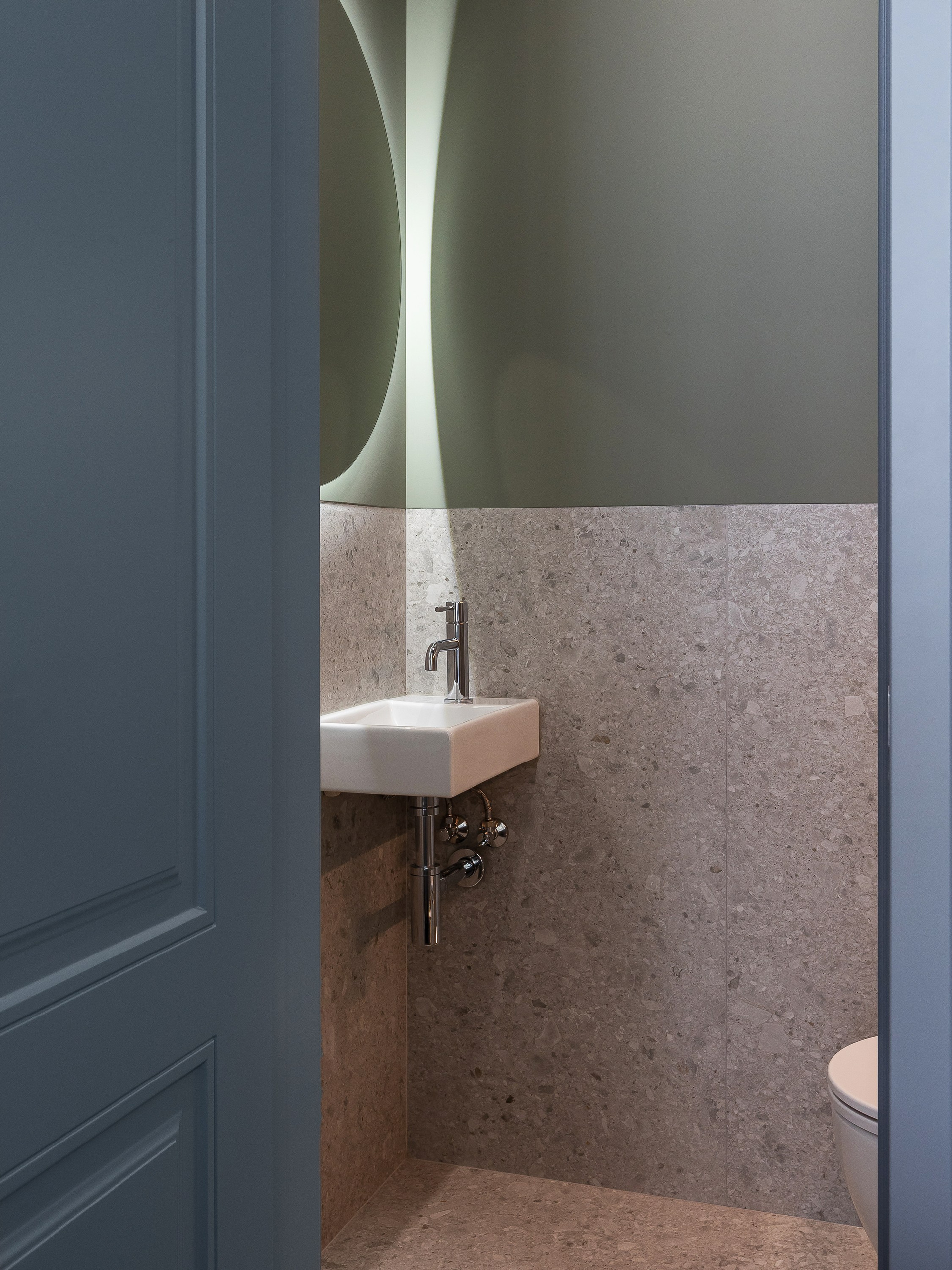 В проекте использованы природные оттенки серого, бежевого, коричневого и зеленого, как фон для владельца и его творческих идей. А также вкрапления голубого и золотого, как символ жизни и радости.