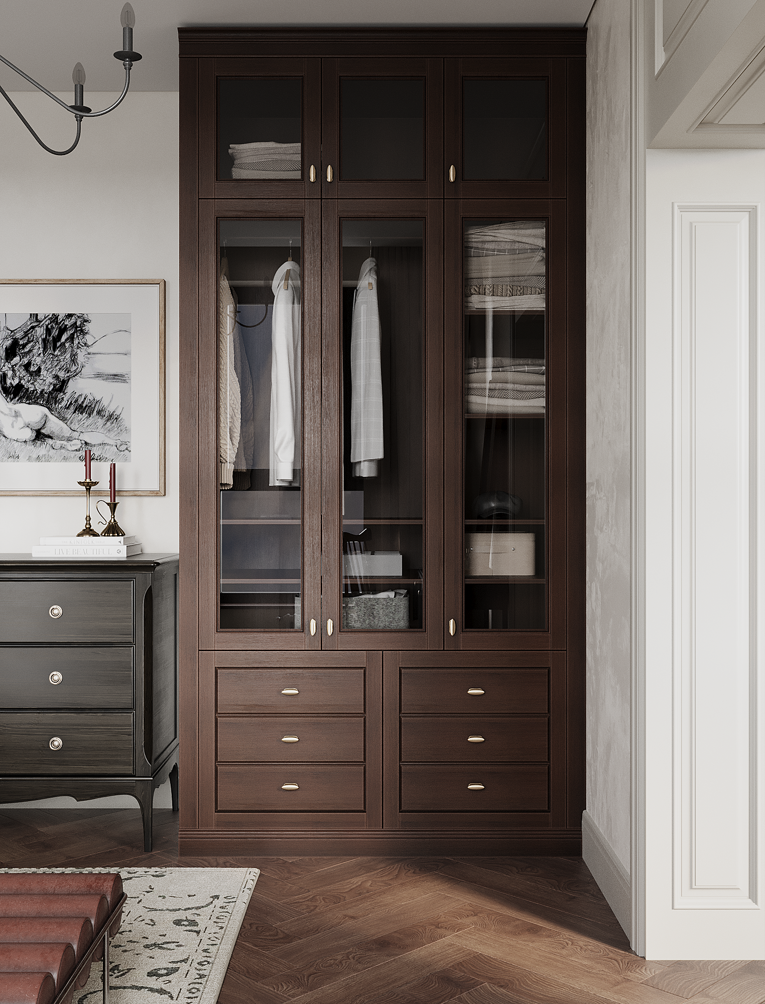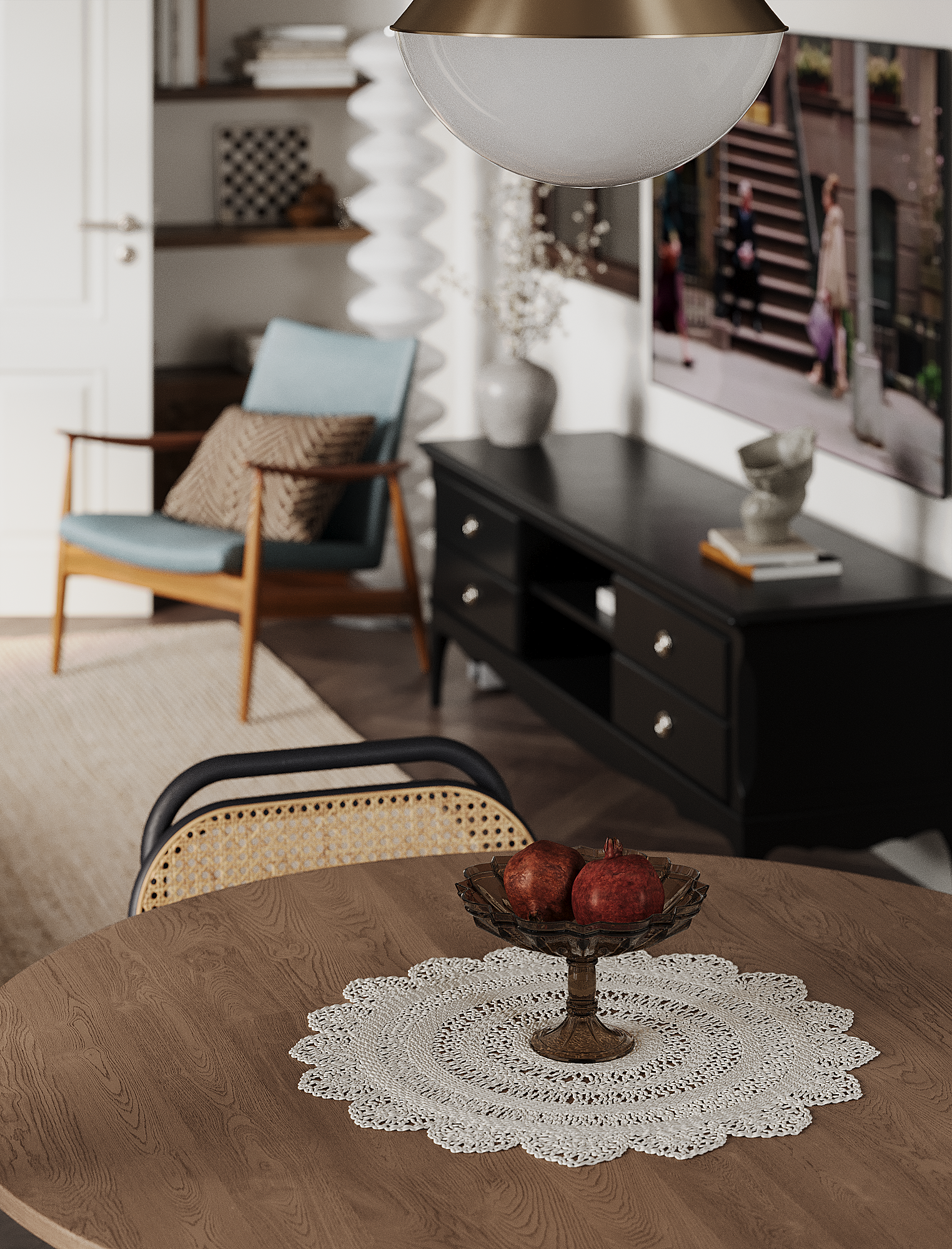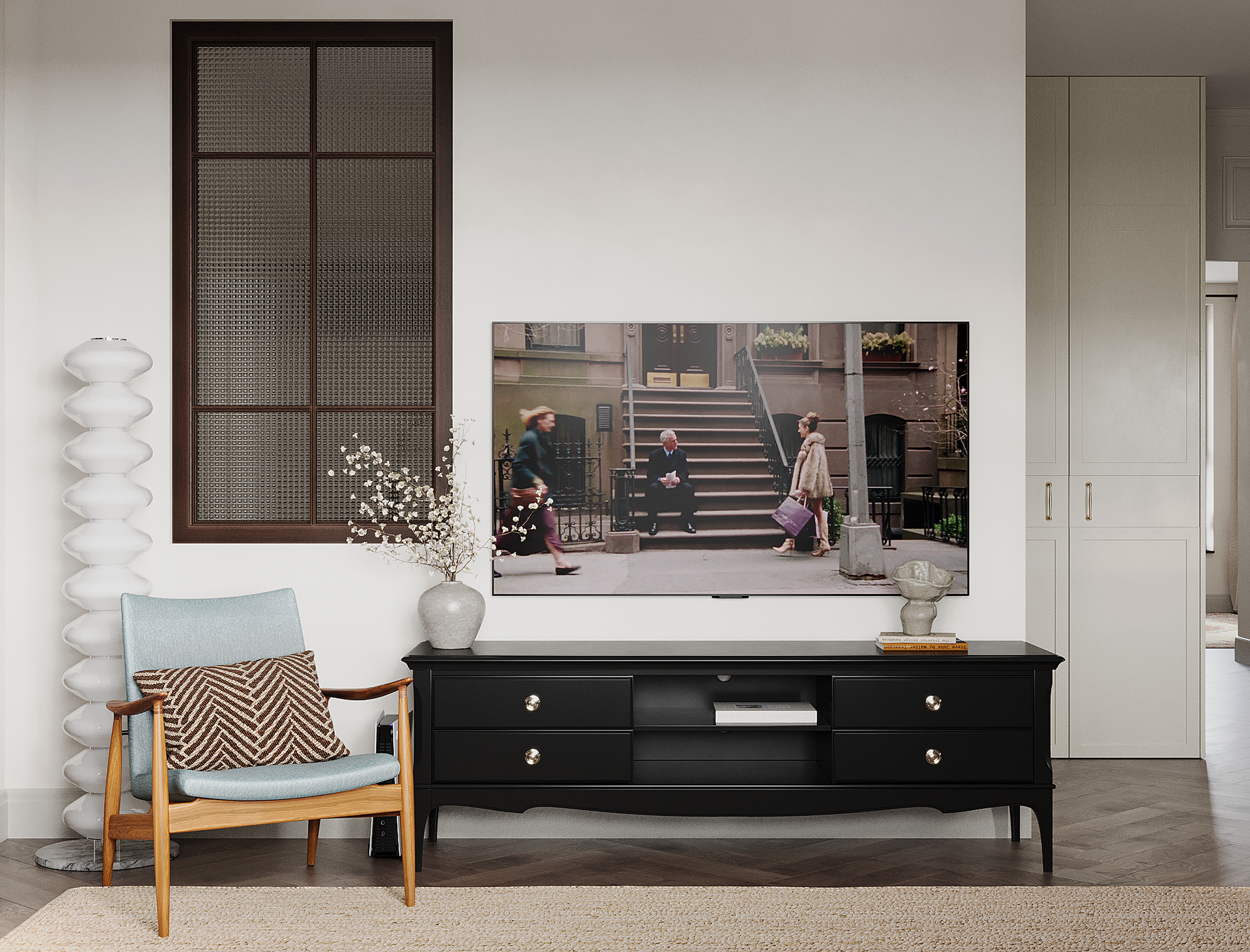 Искусство — неотъемлемая часть нашей жизни. В интерьере предусмотрены места не только для живописи и графики, но и для скульптуры, декоративных объектов, посуды, книг.